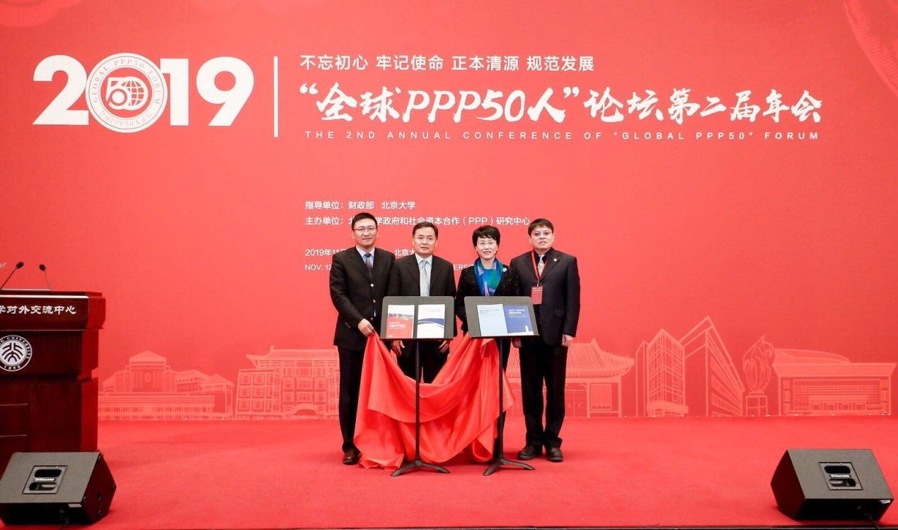 人民政协网北京11月13日电 11月12日上午,由财政部、北京大学指导,北京大学PPP研究中心主办的2019“全球PPP50人”论坛第二届年会在北京大学英杰交流中心成功举办?;嵘希本┐笱PP研究中心发布了2019年部分研究成果:《北京大学-中国PPP指数(2018)》、《北京大学-中国PPP市场蓝皮书(2019)》、《全球PPP的历史沿革与发展—基于国际比较的视角》、《保险资金助力PPP发展的路径研究》。北京大学PPP研究中心主任孙祁祥,财政部PPP中心党委书记、主任焦小平,财政部金融司副司长董德刚,北京大学经济学院院长董志勇等共同上台举行了研究成果发布仪式。