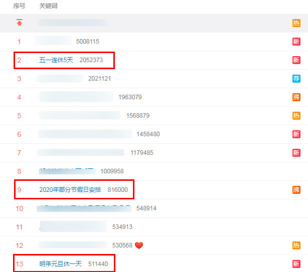 20日下午,2020年部分节假日安排公布后,#2020年部分节假日安排##五一连休5天# #明年元旦休一天#等话题迅速登上微博热搜。