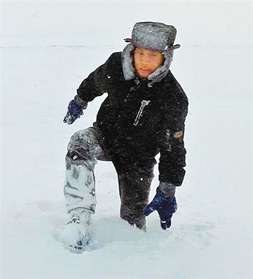 周义朋在大雪后的野外试验现场。(资料照片)