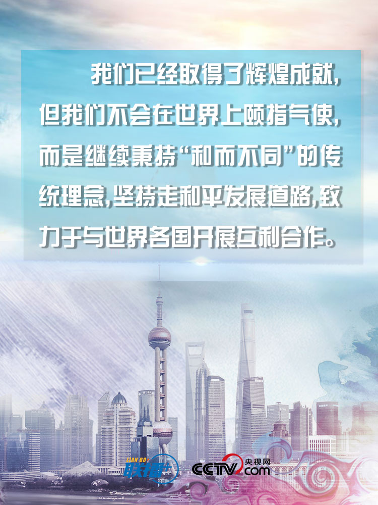 “我们已经取得了辉煌成就,但我们不会在世界上颐指气使,而是继续秉持‘和而不同’的传统理念,坚持走和平发展道路,致力于与世界各国开展互利合作。”11月22日,习近平主席在人民大会堂会见出席2019年“创新经济论坛”外方代表时掷地有声地说道。