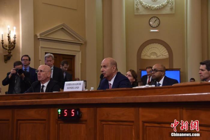 当地时间11月20日,美国驻欧盟大使桑德兰出席国会众议院情报委员会针对美国总统特朗普的弹劾调查听证会。当日听证会长达6小时。 中新社记者 沙晗汀 摄