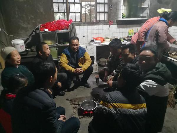 图为陈步飞书记入户召开座谈会,宣传扶贫政策。