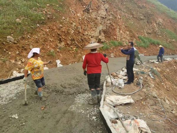 图为陈步飞书记在指导库区产业路硬化工程建设。