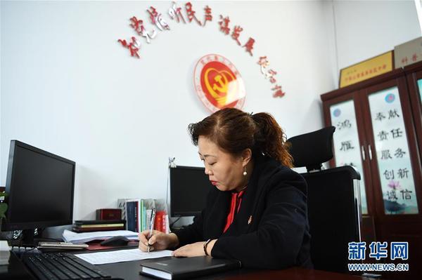 11月22日,任红梅在段南沟社区党群服务中心的办公室里工作。 新华社记者 杨晨光 摄