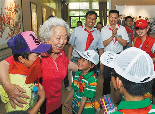 金茂芳(左二)。 新华社发