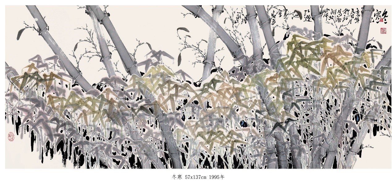 直到一年后的1993年深秋,尹维新开始全身心地投入到中国画创作当中,经过了此前命运的打击和反思,尹维新发现自己有着异常强烈的情感冲动,非常急切地希望将过去许多年里观察的“冰竹”,用笔墨的方法呈现出来。尹维新所经历的生活不幸,已然成为他艺术上的转折点,冰竹的英姿风采,开始成为尹维新笔下最为动人的意象。
