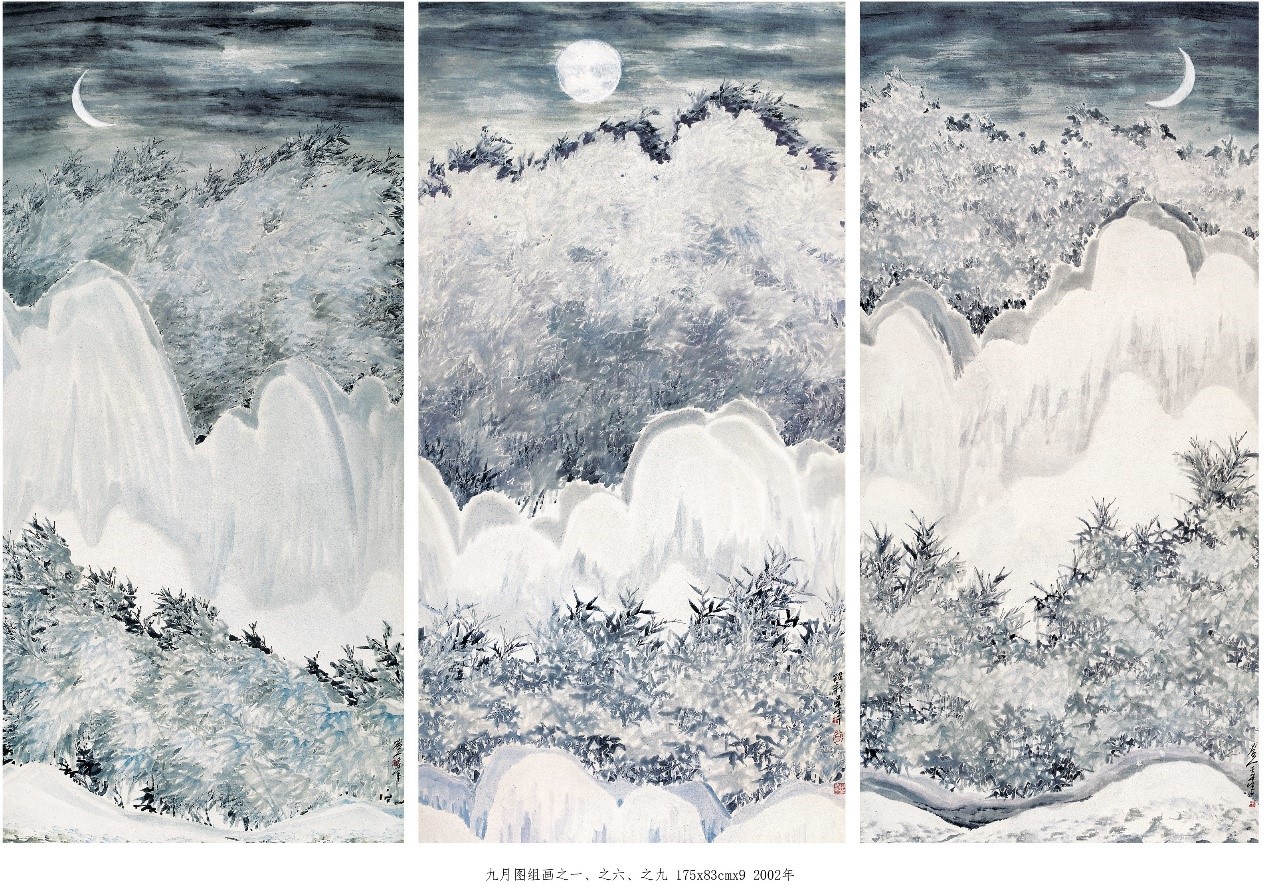 九月图组画之一、之五、之九 175cm x 83cm x 9 2002年