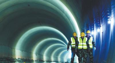 12月12日,京沈高铁全线最后一个隧道——位于北京市密云区的梨花顶隧道,历时63个月的施工顺利贯通,标志着京沈高铁建设取得突破性进展,为全线如期开通运营奠定了坚实基础。京沈高铁是国家“八纵八横”高铁网的重要组成部分,建成通车后北京至沈阳运行时间将缩短至2.5小时。图为工人行走在隧道中。