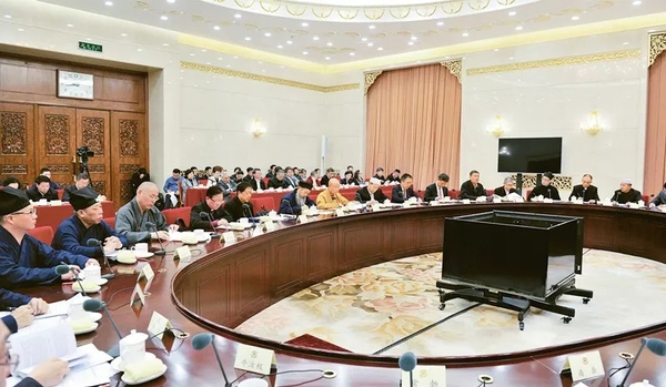 主题协商座谈会是全国政协民族和宗教委员会组织的协商平台,每年选取一个主题,民族界和宗教界委员围绕主题开展调研和座谈。图为2019年11月26日,全国政协民族和宗教委员会召开宗教界主题协商座谈会,围绕“以社会主义核心价值观引领各宗教对教义教规作出符合时代进步要求的阐释”座谈交流。人民政协报 姜贵东/摄