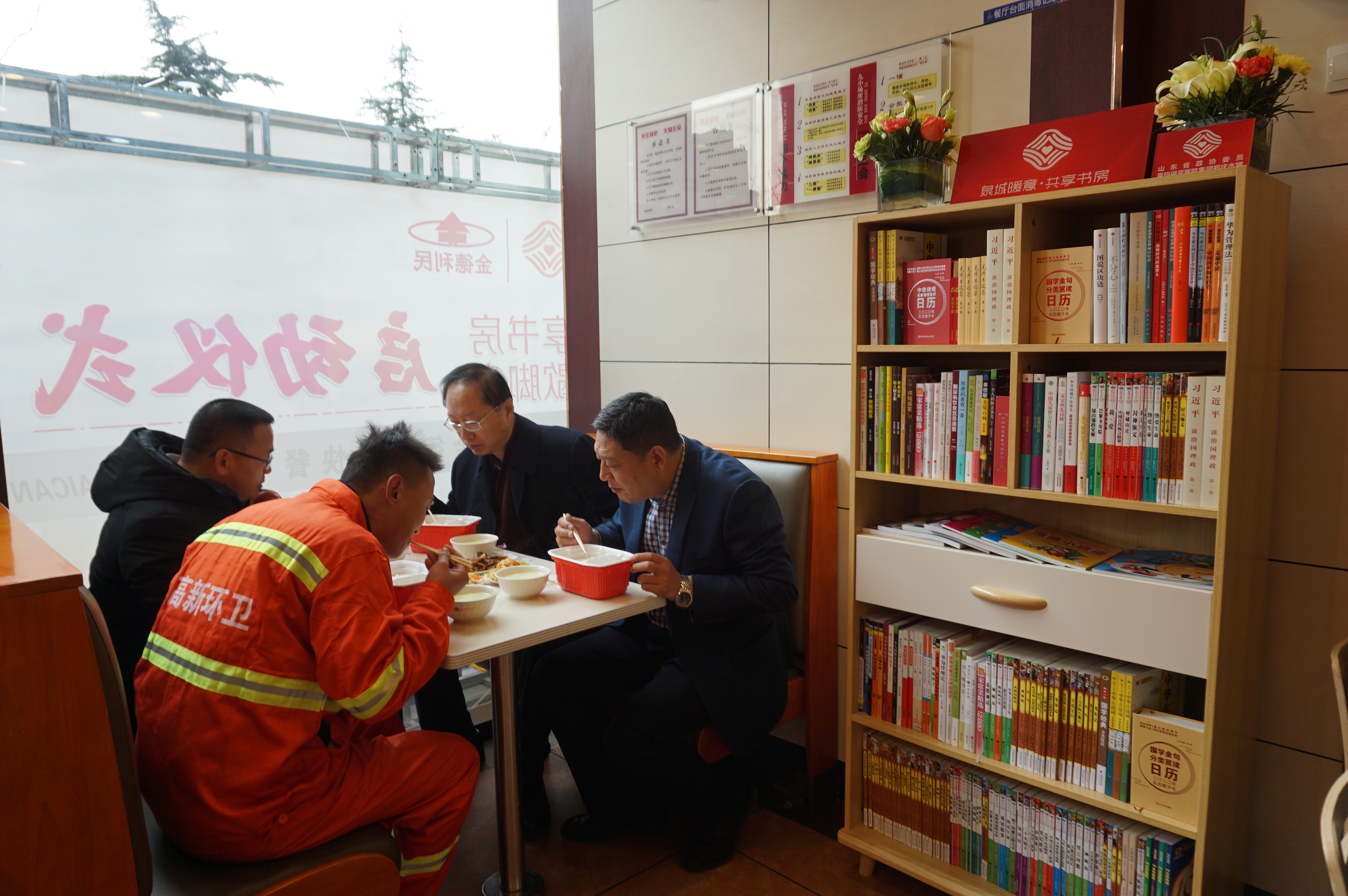 人民政协网济南12月19日电(记者 张文敬 雷蕾 通讯员 别玉民)有一种大爱叫“橙色马甲”,他们起早贪黑,辛勤洒扫,闪烁在城市的每个角落,这就是我们可爱的环卫工人。12月19日,由山东省政协经济委员会发起、省政协经济委员会与省政协委员联络工作委员会共同组织,联合济南市政协、济南市文明委、市商务局、市城管局、省图书馆等相关单位,部分省政协委员、第三方社会公益组织山东省青少年发展基金会、部分企业门店和银行网点“四方合作”共同开展的“泉城暖意·共享书房”暨“环卫工人爱心歇脚点”公益项目在济南启动。