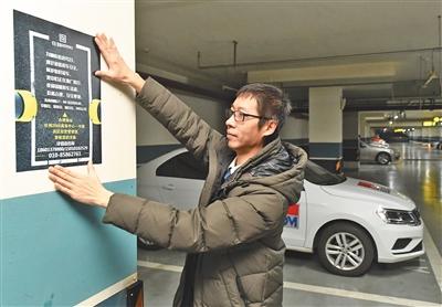 住邦2000地下三层停车场,工作人员张贴错时停车说明。新京报记者 吴宁 摄
