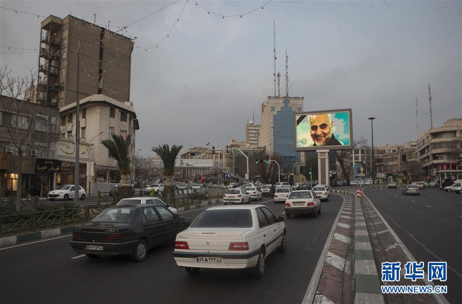 1月3日,在伊朗德黑兰,街道的大屏幕上显示伊朗伊斯兰革命卫队下属“圣城旅”指挥官卡西姆·苏莱马尼的头像。 苏莱马尼当天在美国对伊拉克首都巴格达国际机场发起的一场火箭弹袭击中身亡。伊朗多名高官随后警告将对美国进行报复。 新华社发(艾哈迈德·哈拉比萨斯摄)