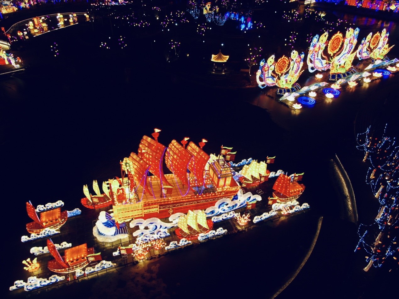 唐山南湖春节灯会已成功举办三届,有力地推动了城市旅游多元发展,丰富了百姓的精神文化生活。今年,唐山文旅集团斥巨资打造的第四届唐山南湖春节灯会,以“华北之最,历史最好”为总目标,立足“中国元素、冀东风韵、唐山特色”,旨在用艺术化的表现形式充分展示国家强盛、城市发展和南湖时代建设成果,进一步发力夜游经济,持续打造唐山南湖春节灯会品牌。