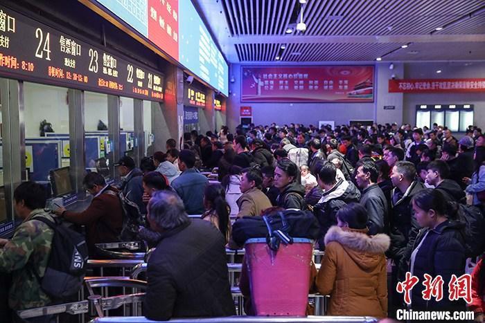 资料图:春运期间,旅客在火车站排队买票。 中新社记者 瞿宏伦 摄