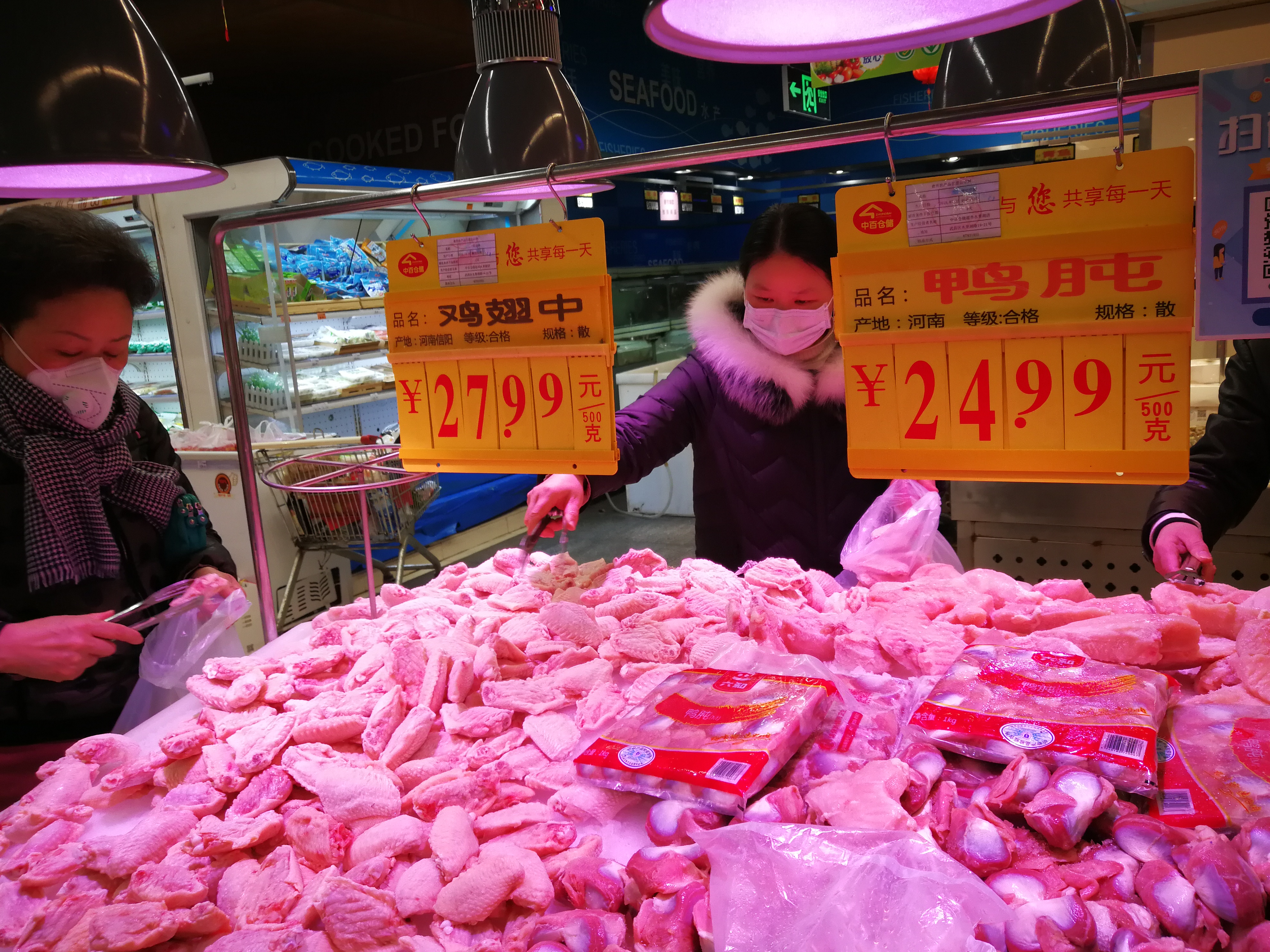 图三:市民佩戴口罩理性采购禽肉类食品。