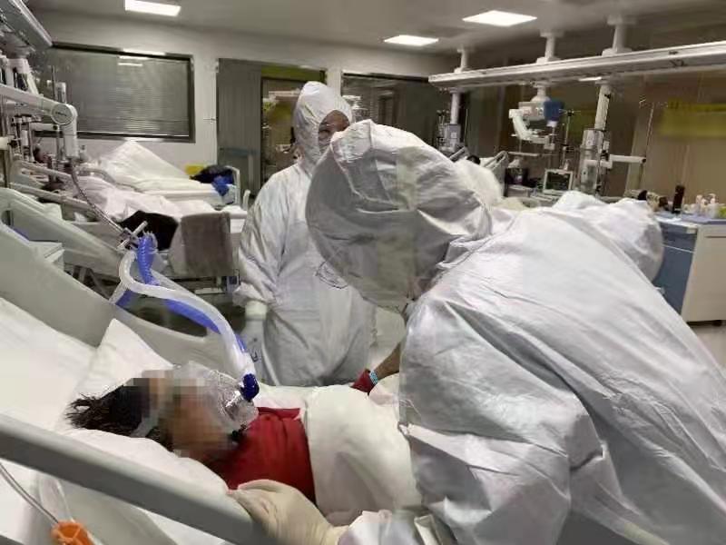 在防护物资极度匮乏的情况下,医院集中内外科医生51人、护理人员125人应对疫情。但是,发热的患者太多了,两院共计100多位医护人员倒下了?!按蠹疑硇木闫?,拼尽全身的力量努力去救治每一个病患?!弊魑鲁さ男豢∶鳎吹阶约旱摹罢接选币桓龈龅瓜?,痛彻心扉。