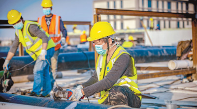 4日,雷神山医院建设现场,中建五局三公司工人正在抓紧施工。该院将于近日交付使用。侯琳良 刘 强摄影报道