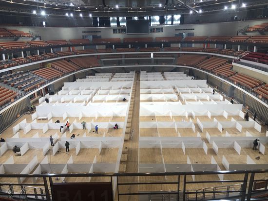 武汉体育馆方舱医院建设用时10小时 再现“火神山”速度