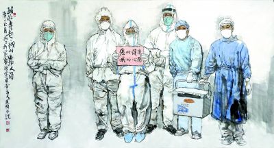 《致敬奔赴一线的医护人员》。 绘画/王珂