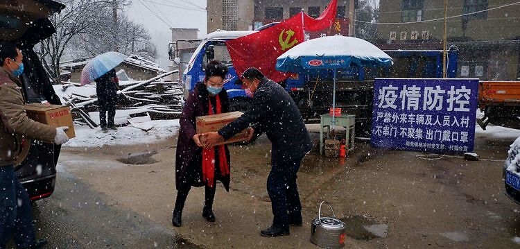 在抗击疫情的非常时期,信阳迎来了鼠年的第一场大雪,给抗击疫情工作带来一定的困难,河南省政协委员、灵山茶业公司董事长钱晓玲看着天空中纷飞的大雪,心急如焚,天气寒冷,茶园辖区各村疫情防控点的防寒保暖怎么办,她一大早紧急赶到公司召开公司抗击疫情志愿者紧急会议,他讲公司茶园辖区的各村一线抗击疫情防控点,由于地处乡村,条件十分简陋,今天突降大雪,各村疫情防控站点人员的防寒保暖工作显得极为迫切。立即安排财务人员千方百计筹集资金,快速采购一批取暖用木炭和火盆,她带领公司抗击疫情志愿者冒风雪第一时间将取暖物品送到20多个村的抗击疫情防控站点,为抗击疫情一线站点人员送去温暖,并叮嘱各村疫情防控站点人员要在做好疫情防控的同时,一定要注意身体,感谢大家为抗击疫情工作的辛苦付出。灵山茶业公司将与大家同舟共济,为打赢抗击疫情防控攻坚战积极贡献力量。各村站点疫情防控人员心中充满了暖意和感激。在前几天刚送来茶叶、茶粉和茶壶的情况下,今天又为我们送来取暖物品,真心感谢灵山茶业公司董事长钱晓玲的大爱情怀和为抗击疫情所做的无私奉献!