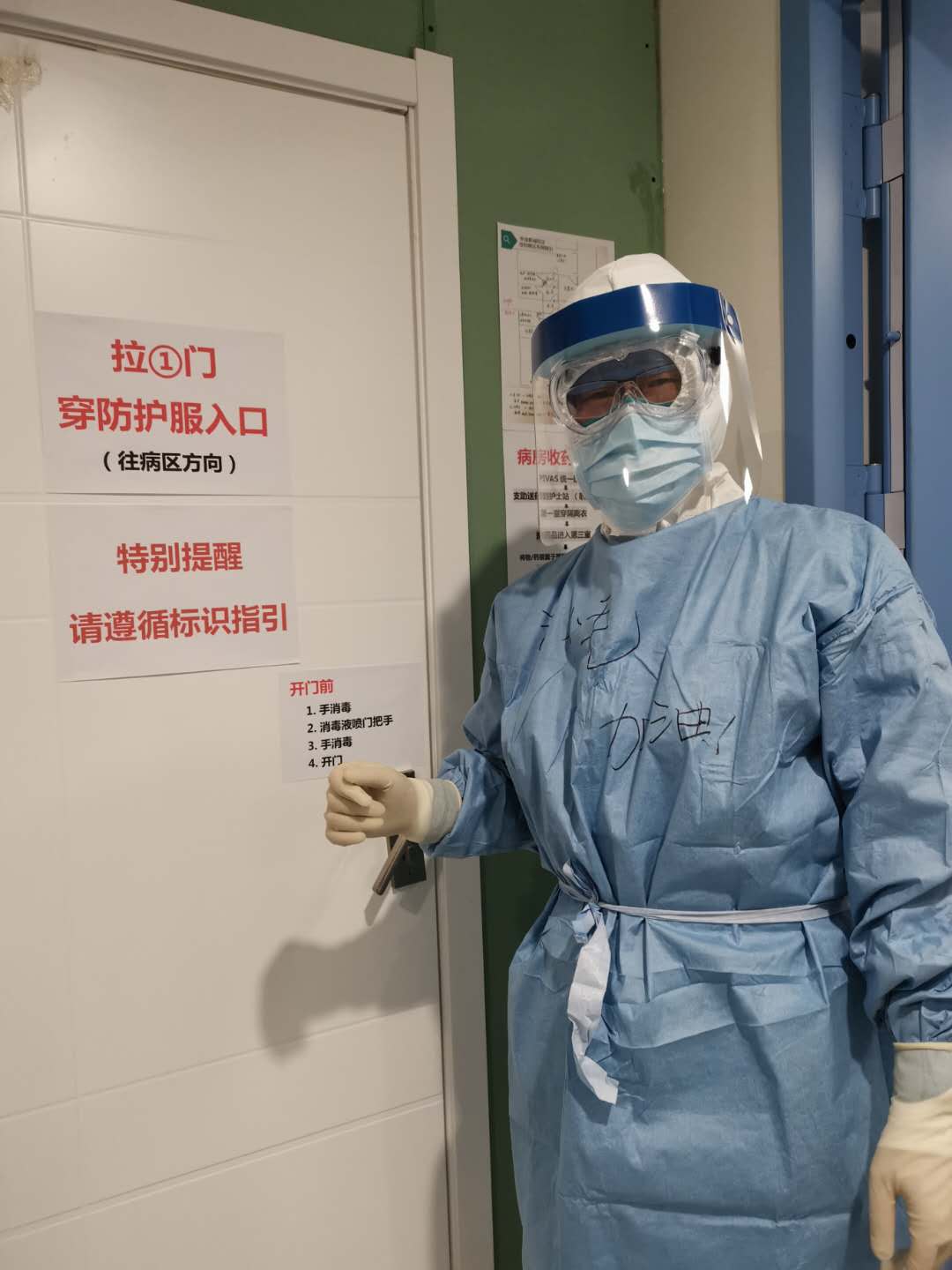 1月29日凌晨3点,北医三院援鄂医疗队进入同济医院中法新城院区病房开展临床工作。2003年,从抗击非典的病房中走出的他,17年之后,再次与冠状病毒交锋?!霸诓∏镆欢ú灰?,要沉着面对病人,稳定病人情绪,给病人以信心和力量,同时也要注意个人防护?!备鹎旄诙V龆釉彼?。