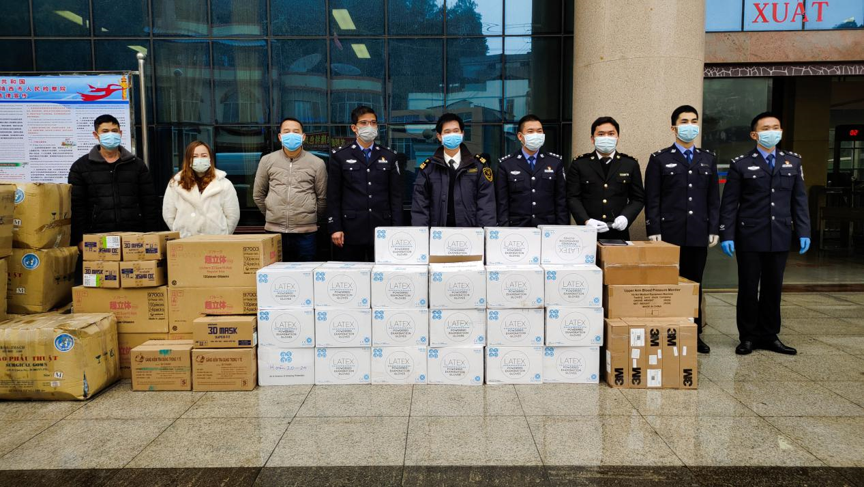 2月1日凌晨,30万只医用口罩,经过空地连程运输,终于在深夜到达口岸。但是由于越方实施了新的防疫政策,如何及时顺利通关又是一个问题。