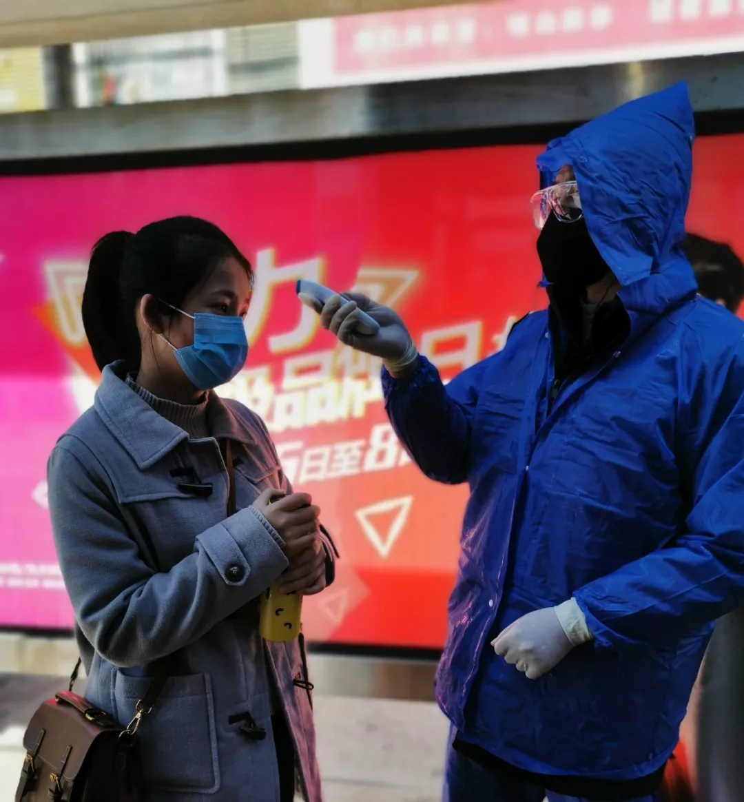 图为三川智慧对进场员工进行体温检测。