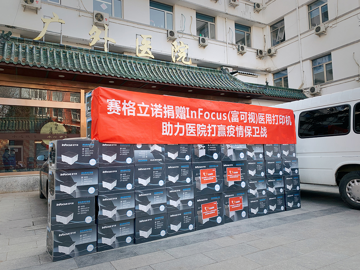 虽然第一次愿望没能实现,但他认定智慧化、数字化的软硬件服务必是抗疫所需。经区政协与有关部门牵线搭桥,他了解发现医疗一线的医用硬件设施有部分老化,尤其门诊的打印设备是急需,而他执掌的赛格立诺在智能化文印方面探索耕耘了26年,能快速高效的为医院提供和配备这方面需求。于是,陈川立即行动,加紧调配了第一批100台由赛格立诺全权代理的富士康InFocus打印机,捐赠给东城区参加抗疫防疫工作的医院单位。