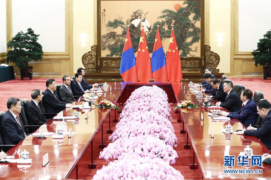 习近平指出,中蒙是山水相连的友好邻邦。中方高度重视发展中蒙关系,始终将蒙古国作为中国周边外交的重要方向。中方愿同蒙方一道,巩固政治互信,加强共建“一带一路”合作,共同推动构建命运共同体,更好造福两国人民,为地区和平稳定发展作出贡献。
