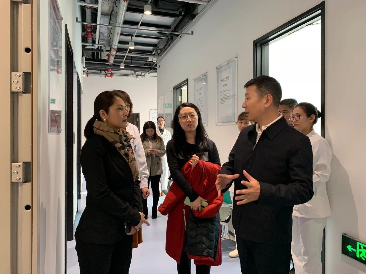 王玉英,女,北京大学第一医院胸外科护士长,现支援在武汉同济医院中法新城院区。(中为王玉英)