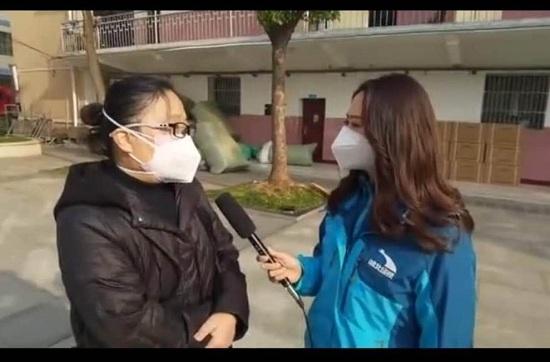 赵群在方舱医院接受记者采访