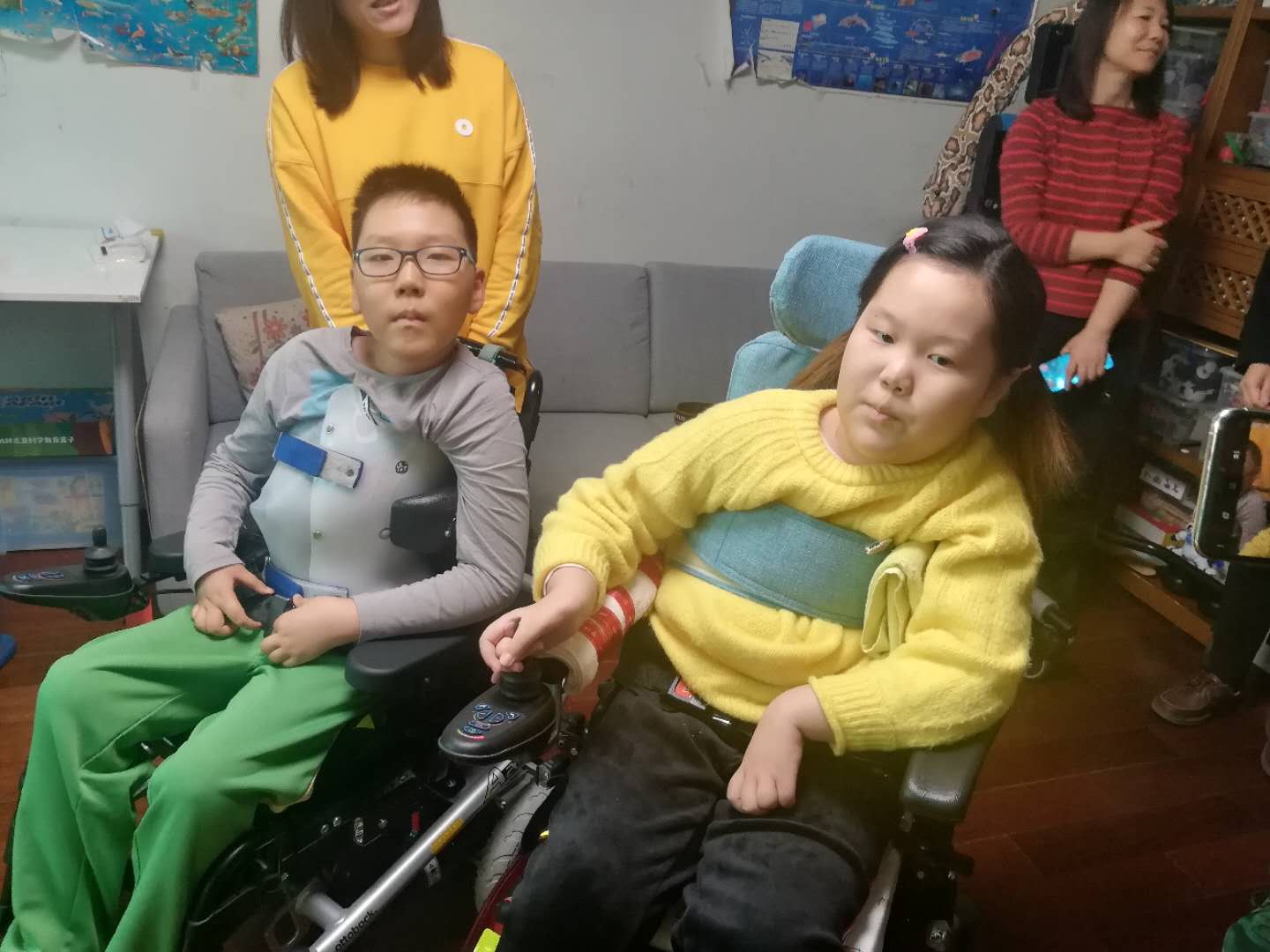 “孩子用的轮椅功能很多啊!”在现场,记者的一句话戳中了三个孩子母亲的心窝。