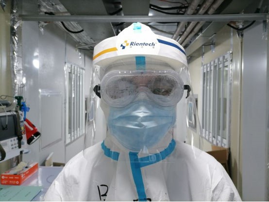 雷神山医院医护人员如今佩戴防雾抑菌纳米涂层的护目镜的效果