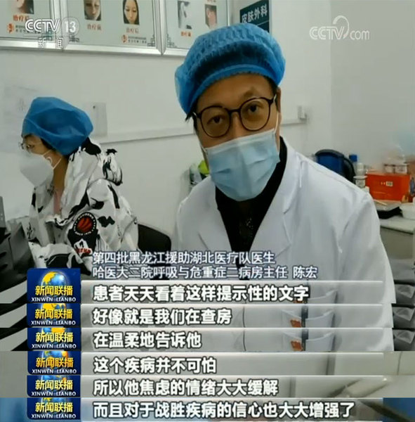 “继续努力,早日出院”“新冠必败,您必胜”“坚持就是胜利”,在武汉市第一医院16楼重症病区,几乎每位患者床头都贴有一张写着鼓励话语的淡粉色纸卡,而这些都出自前来支援的哈尔滨医科大学附属第二医院呼吸科陈宏医生之手。