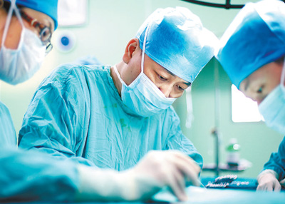 手术台上的江学庆(中)。武汉市中心医院供图