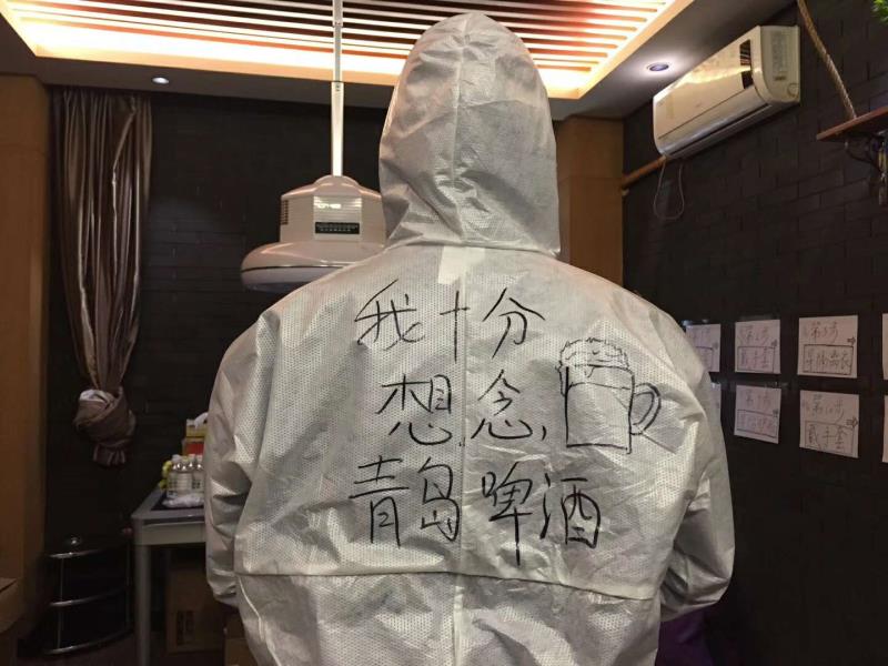一句话,一个呲牙笑的表情,还有两张青岛二中92级校友徐栋在湖北战“疫”一线的照片。这天,同学姚伟在朋友圈里记录了徐栋的愿望并讲述了他和高中同学助力抗击疫情的故事。照片上,徐栋身着隔离服,后背上写着:我十分想念青岛啤酒,字的旁边还画有满杯的啤酒。
