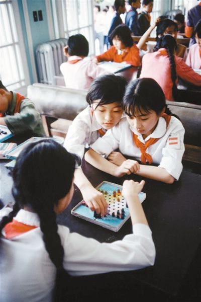 1980年巴贝在上海拍摄的正在下跳棋的小学生们。