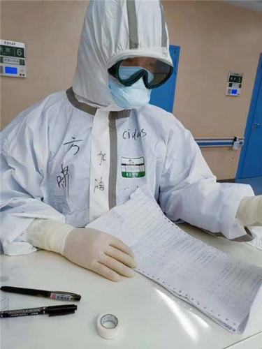 到了武汉,他迅速调整好心态,进入了工作状态,不愧为一名急诊专业人员。因为有护理急危重症病人的经验,心理素质过硬,他被任命为护理组长。经过简单严格的培训,这个穿着厚厚防护服的90后小伙子带着组员开始了工作。