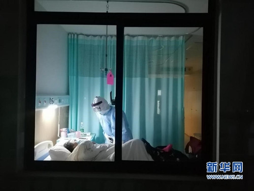 凌晨2点巡视病房,王苑华安抚失眠的奶奶。新华网发(作者供图)