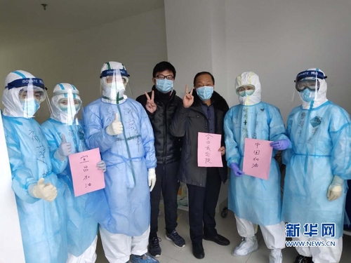 医护人员与即将出院的患者合影。新华网发(作者供图)
