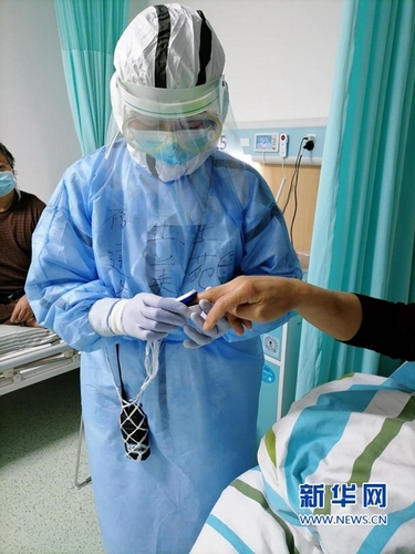 王苑华为患者监测血氧饱和度。新华网发(作者供图)