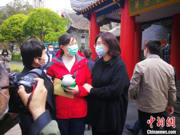 唐梦琳出发前与同事告别。四川大学华西医院供图