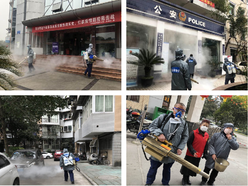 海宇物业是北碚区首家自行出资购买自动大型消毒机为业主服务的单位。政企渔水情,海宇物业受邀,使用最新脉冲喷雾消毒机为北碚区北温泉派出所、北温泉街道等政府部门办公场所消毒,得到政府领导点赞。同时,海宇物业的防“疫”战场不仅仅是在服务小区内,还向外拓展,帮助周边社区进行全面消毒工作。