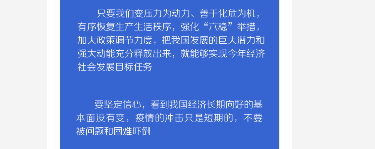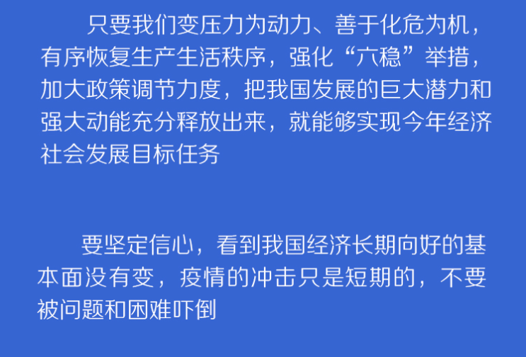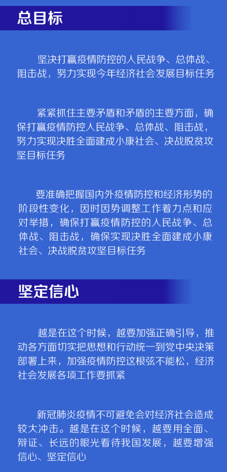 联播+“要准确把握国内外疫情防控和经济形势的阶段性变化,因时因势调整工作着力点和应对举措,确保打赢疫情防控的人民战争、总体战、阻击战,确保实现决胜全面建成小康社会、决战脱贫攻坚目标任务。”