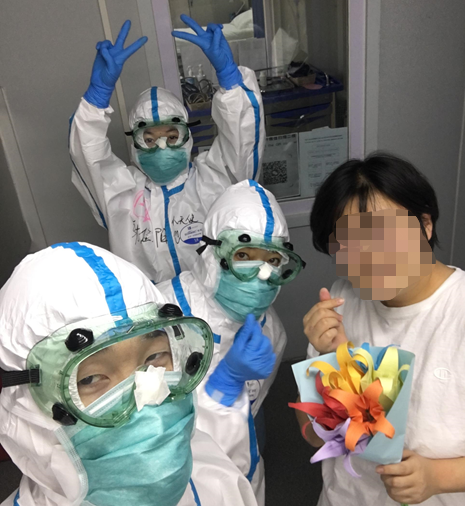 “欢迎回家,送您一朵百合花……”小汤山定点医院1-4病区的护士们给病房里的每位客人,送上了她们自己亲手制作的折纸百合花。
