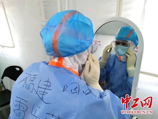 在经过严格的培训和考核后,2月8日首次“进舱”的雷乐莺就被安排到了咽拭子采集组,成了大家口中“与死神打交道的人”。