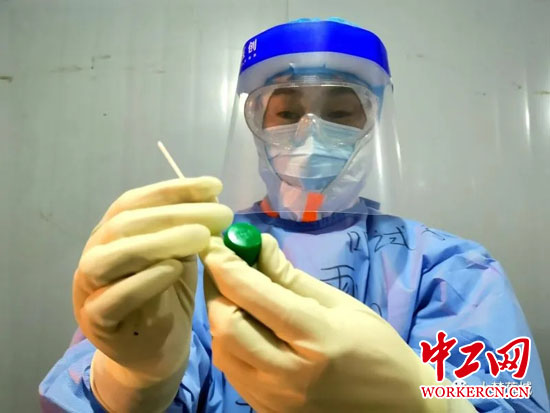 层层防护带来窒息感,长时间无法上厕所、无法进食,每天要在6~8个小时内完成近100个标本的精准采集,这无疑挑战着医务人员的身体极限。