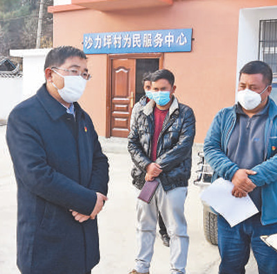 杨承新(左一)在调研脱贫攻坚补短板工作。 王正宁摄