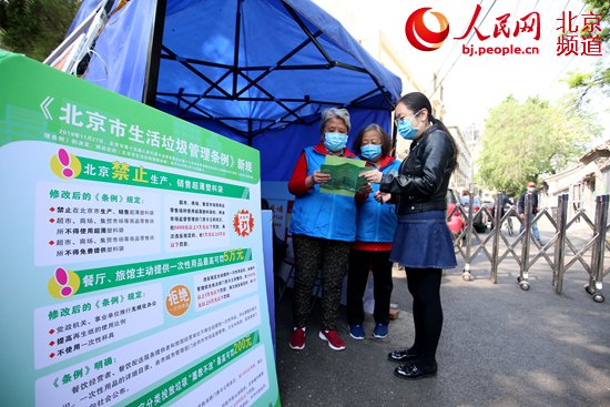 东城区向居民宣传《北京市生活垃圾管理条例》新规。 人民网 池梦蕊 摄