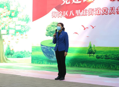 北京市海淀区八里庄街道党工委书记曾涛带领着40名地区党员代表诵读《党员践行垃圾分类承诺书》